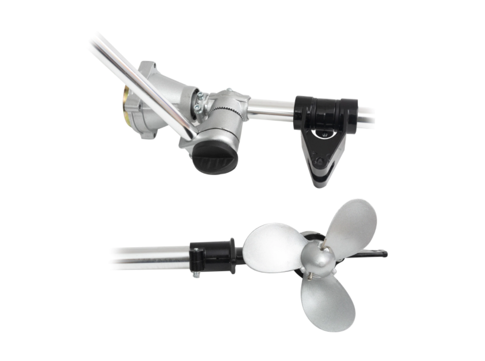 Cu acest adaptor puteti transforma o motocositoare gospodareasca intr-un motor de barca . Sistemul de adaptare include atat prinderea pe barca cat si sistemul de adaptare la motorul motocoasei. Manerul este dotat cu sistem de accelerare si decelerare a vitezei de rotatie. Se poate monta usor pe toate tipurile de barci mici.