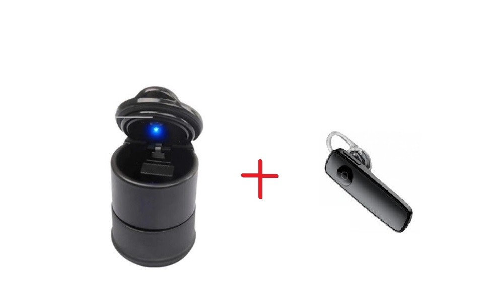 Pachet Scrumiera Auto cu Led + Casca Bluetooth