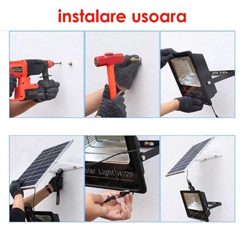 Corp Iluminat LED 50W cu Telecomanda, Generatie 2022 cu Incarcare Solara + Panou Solar De Dimensiuni Mari Rezistent la Apa