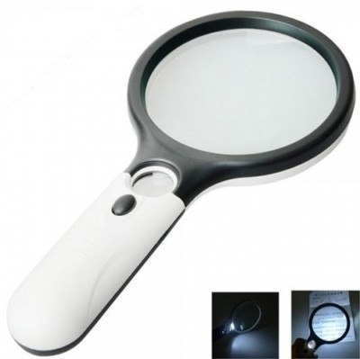 Aceasta Lupa profesionala cu 3 LED-uri este disponibila pe culoarea alb si negru si se alimenteaza cu 3 baterii AAA care nu sunt incluse.