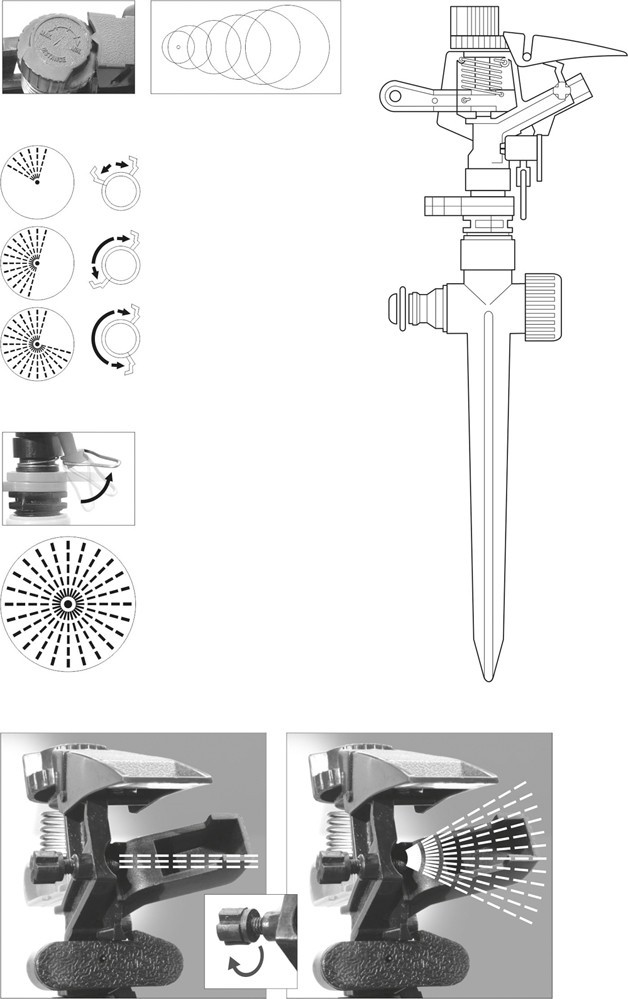 Aspersor din plastic cu impuls rotativ este ideal pentru gradina si gazon deoarece distribuie apa uniform cu jet usor astfel plantele nefiind deranjate. . Tija este pentru plasarea usoara in gazon. Aspersorul functioneaza de la 45 la 360 grade. Diametrul maxim al dispozitivului de pulverizare este de 24 m.