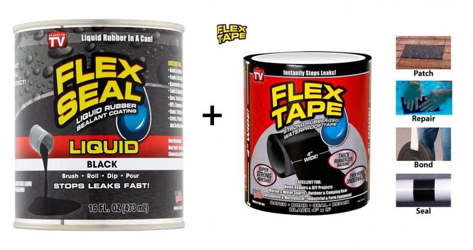 Pachet kit reparatii banda adeziva Flex Tape si adeziv lichid Flex Seal