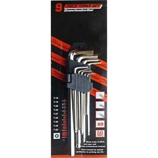 Setul cu 9 imbusuri este confectionat dintr-un material foarte rezistent (crom vanadiu) de cea mai buna calitate.