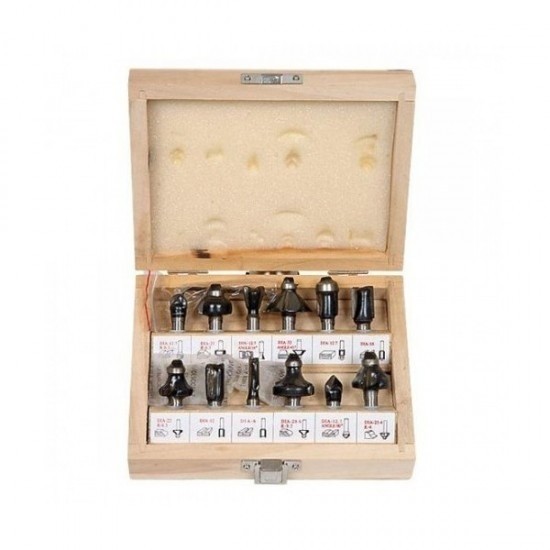 Depozitat in cutie de lemn, setul de freze contine 12 piese cu capete diferite.