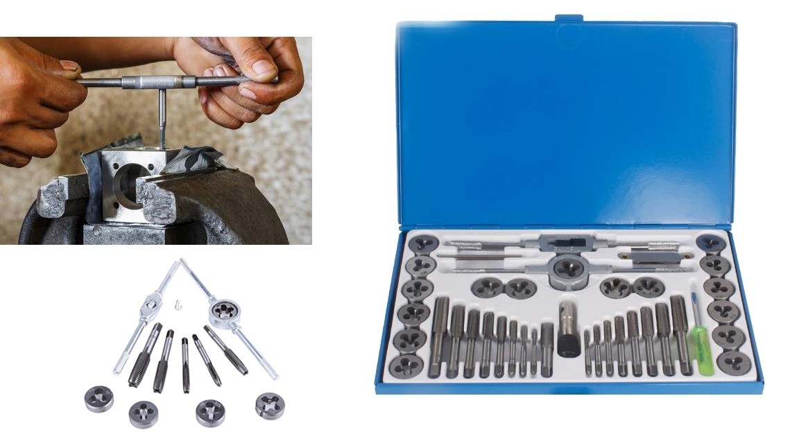 Trusa profesionala de tarozi si filiere contine 40 de piese ideale pentru reparatia sau executarea filetelor pentru piulite si suruburi.