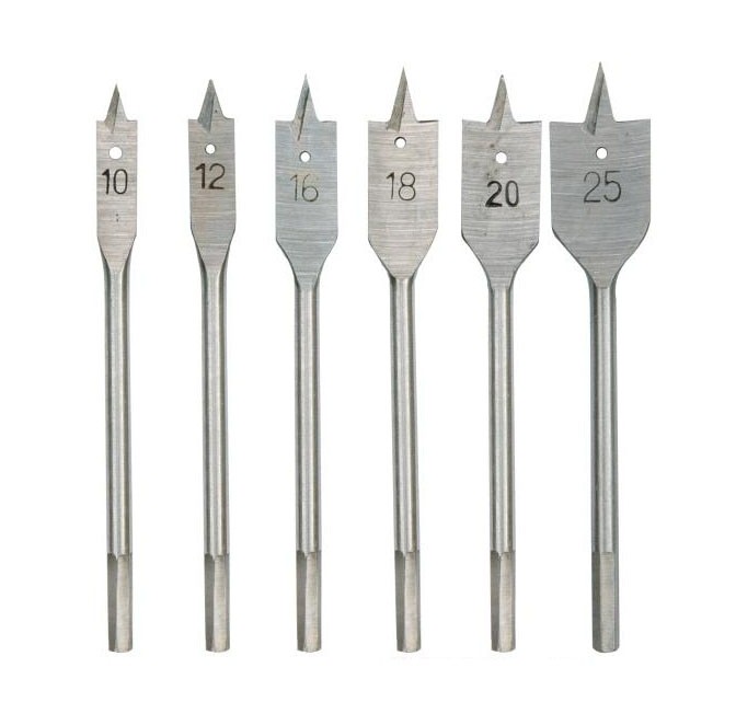 Set 6 burghie plate freze pt lemn 10-25mmSetul de burghie plate lemn sunt ideale pentru executarea diverselor lucrari prin casa sau gradina, ele fiind destinate lucrarilor de tip hobby.